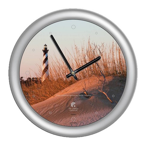 14 X 1 8 Cape Hatteras Lighthouse Quartz Movement Decorative Wall Clock Silver Frame By Chicago Lighthouse Target